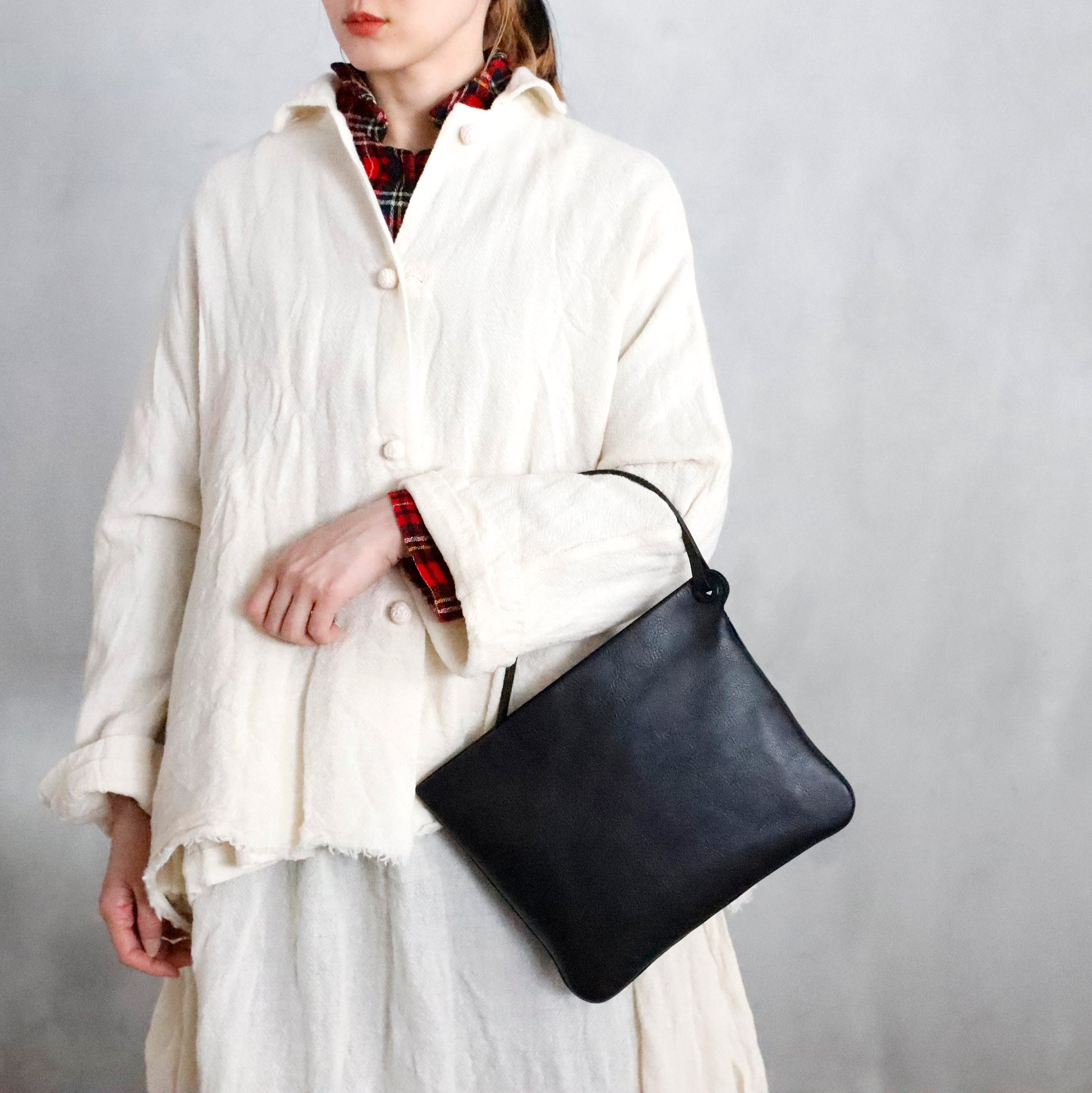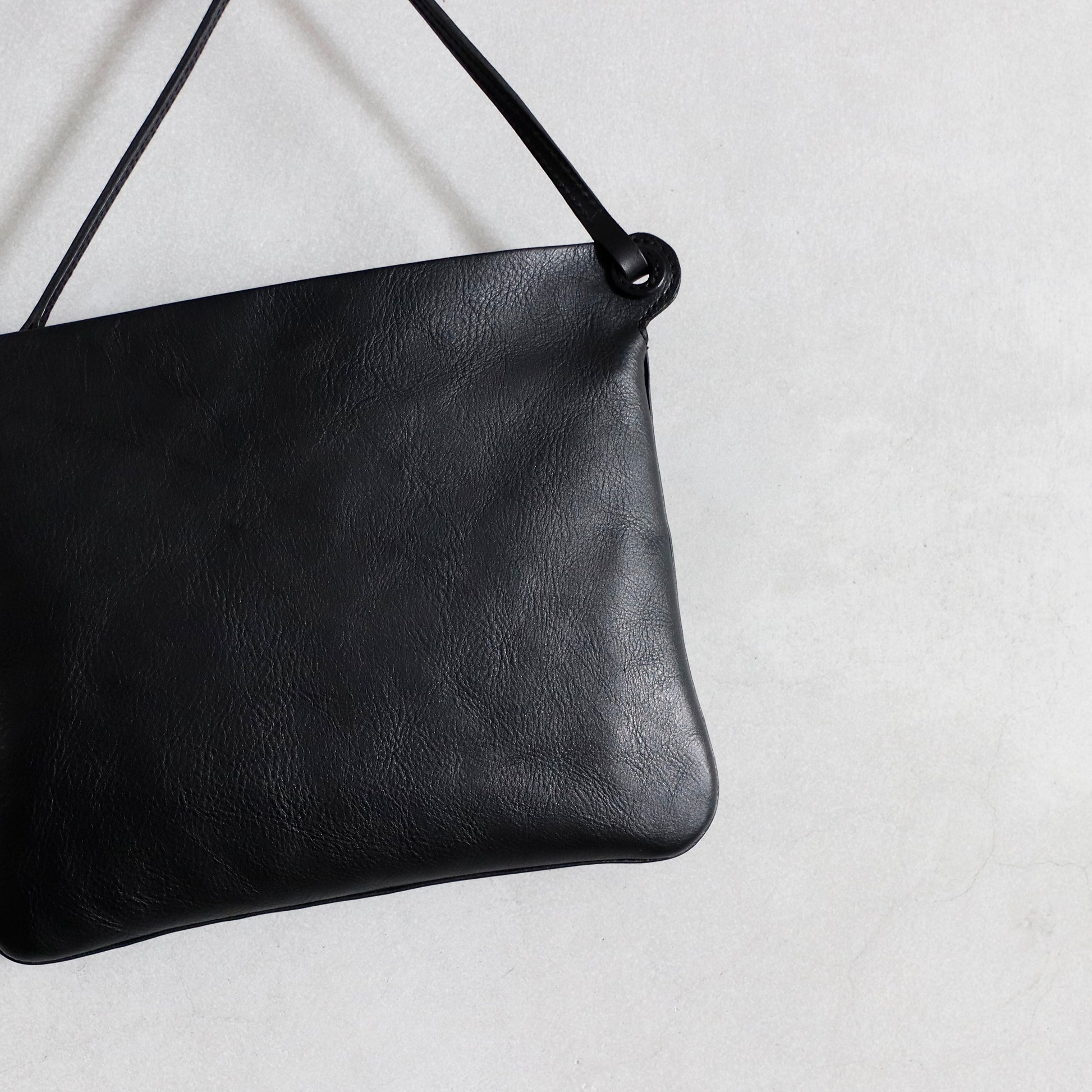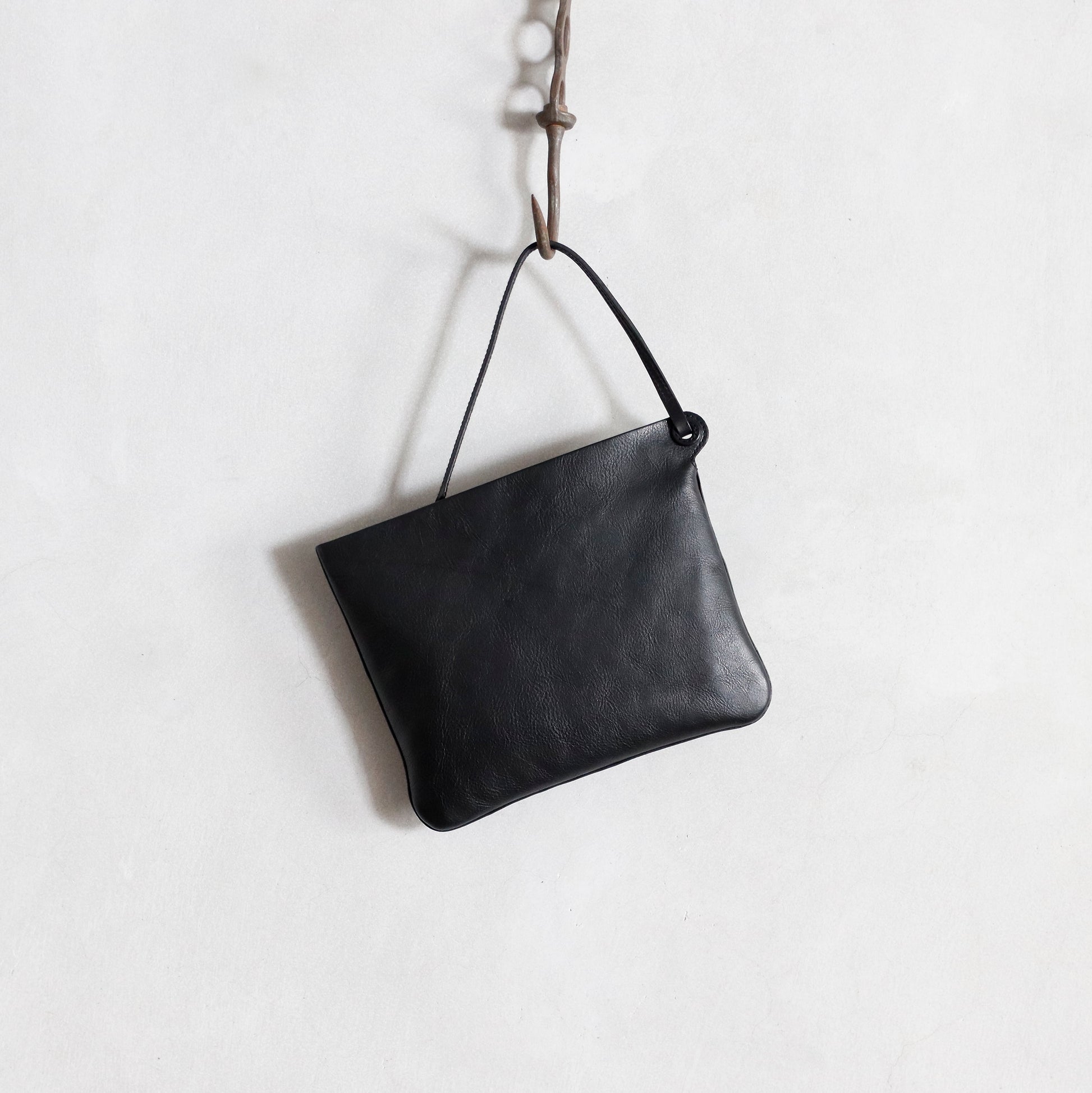 ランダムに入る存在感ある小シボとコシが有りながらしなやかな触感のポーチ/ ミニバッグ。